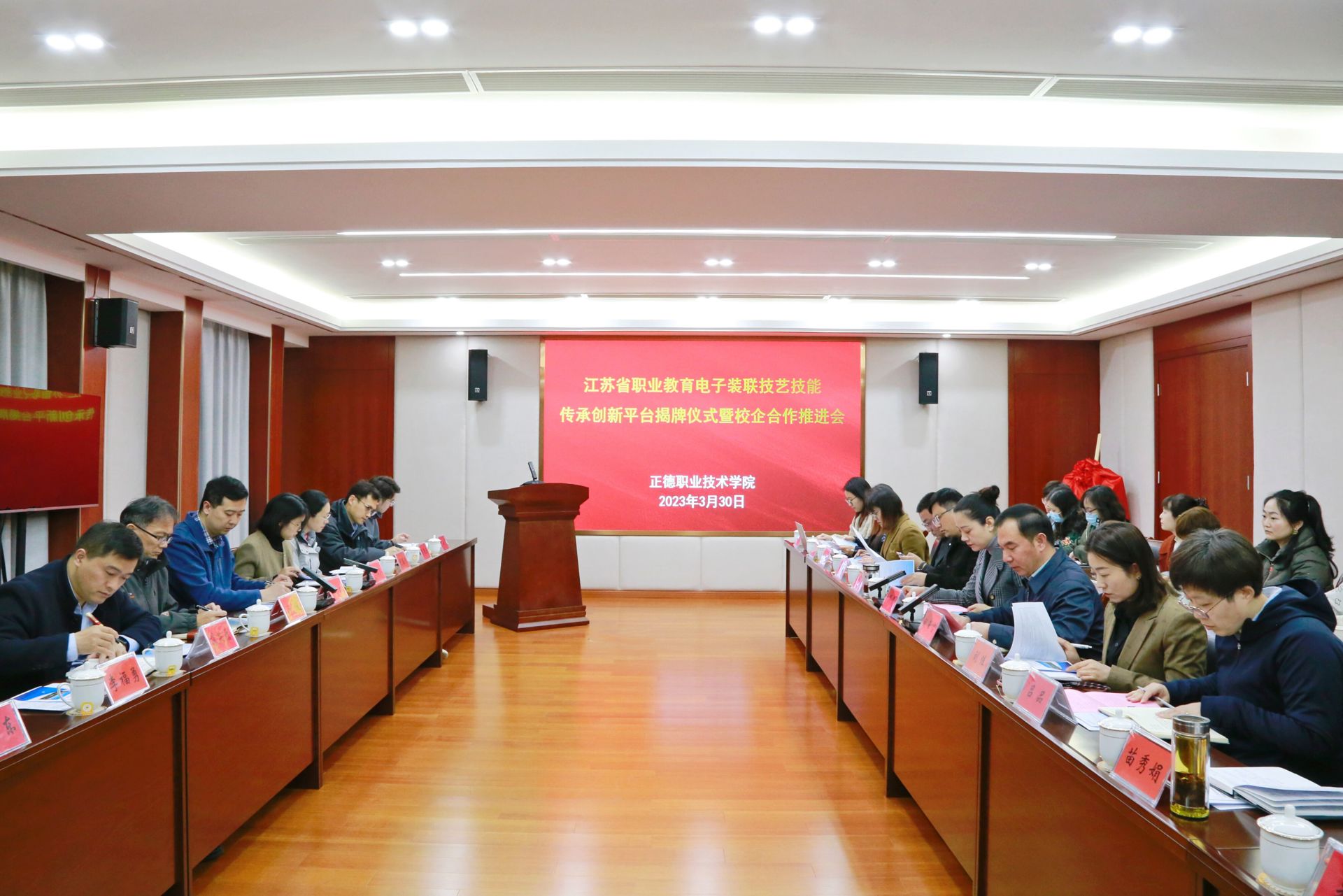 为进一步推进江苏省职业教育电子装联技艺技能传承创新平台建设工作,将校企合作做深做实,3月30日,91自拍 举行江苏省职业教育电子装联技艺技能传承创新平台揭牌仪式暨校企合作推进会,邀请中国电子科技集团公司第十四研究所微系统事业部副部长纪乐等一行11人来院交流研讨。学院副院长梁薇,人事处、教务处、电子与信息技术系主要负责人出席会议。教师、辅导员和学生代表参会。会议由人事处处长刘玉宝主持。