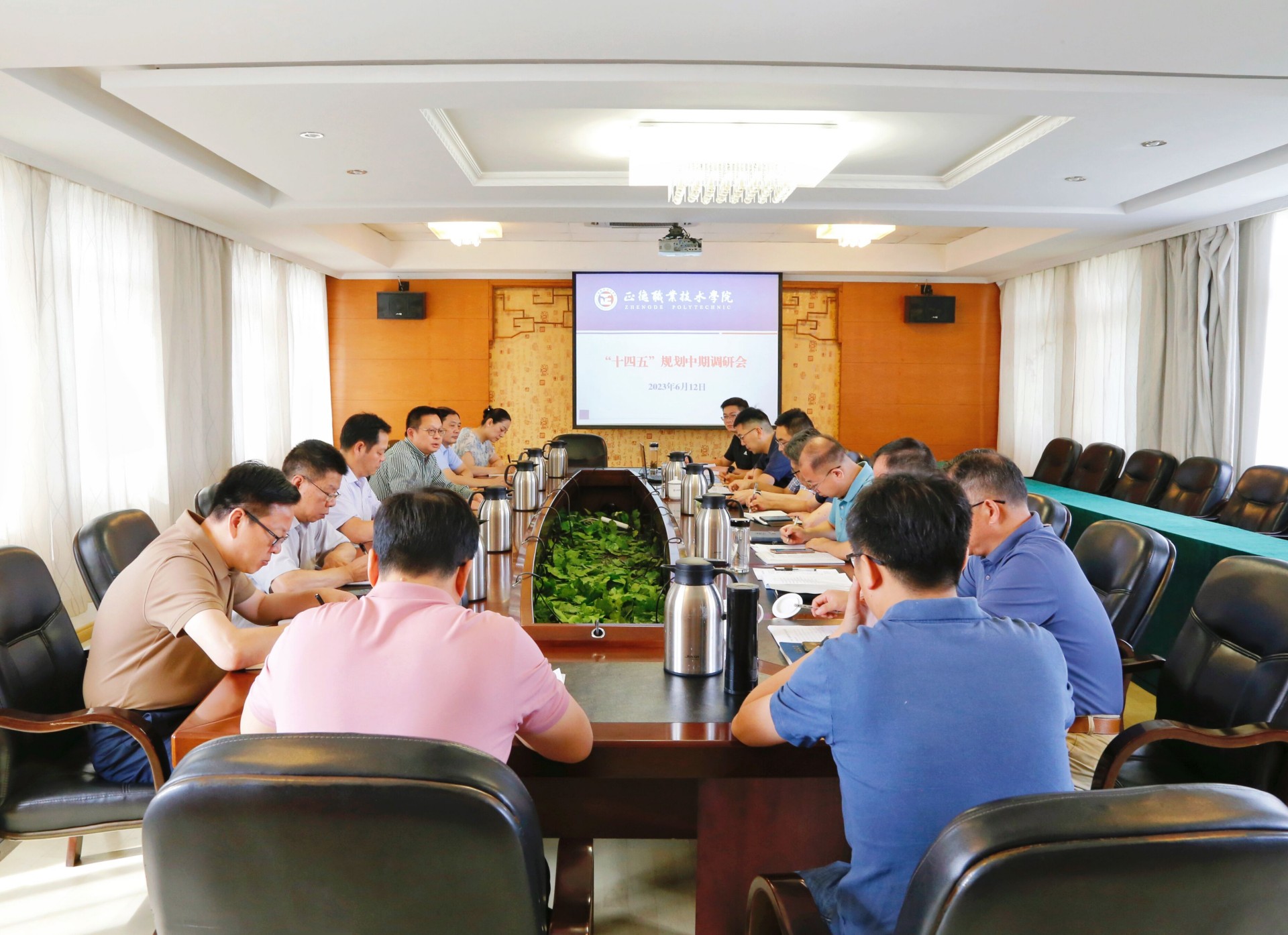 为科学检查评估“十四五”规划实施阶段性成效,并认真谋划推进“十四五”中后期行动,6月12日,91自拍 在行政楼三楼会议室召开了“十四五”规划中期调研会。院领导孙永荣、孙雷、高斌、江爱华、赵凯雷、梁薇出席会议,院长助理王健、王伟、王墀及相关职能部门负责人参加会议。会议由党委书记、政府督导专员孙雷主持。