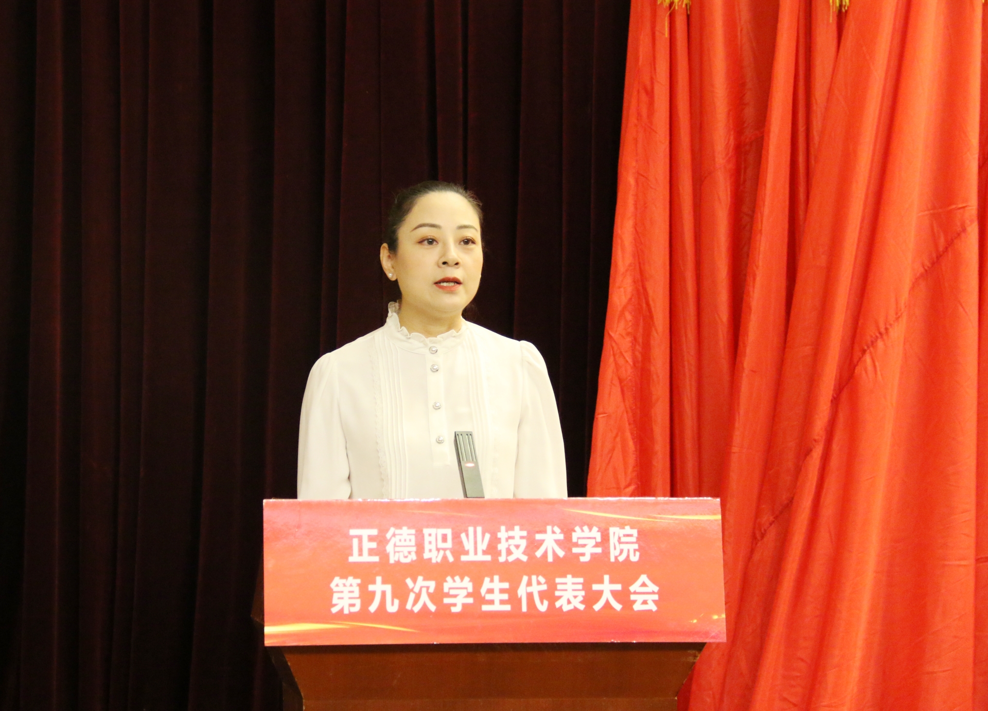 梁薇代表学院党委对本次学代会的召开表示祝贺,向长期以来关心支持91自拍 学生会工作的省学联、兄弟院校表示感谢。她表示,在过去的一年里,91自拍 学生会在院党委和省学联的正确领导下,在院团委的具体指导下,团结带领正德青年学生积极响应全国学联改革号召,坚持依法依章开展工作,在志愿服务奉献、学生权益维护、模范榜样发挥、校园文化建设中发挥了不可替代的作用。同时提出三点希望:一是希望全院广大学生坚定理想信念,勇担时代使命。把习近平总书记对职业教育“大有可为”的殷切期盼转化为“大有作为”的生动实践。二是希望全院各级学生干部练就过硬本领,发挥表率作用。学生干部的首要身份是学生,首要任务是学习,要带头做优良学风的宣传者和执行者。三是希望全院各级学生会组织加强自身建设,赢得信赖支持。要以改革创新精神研究学生会工作面临的新情况、新挑战,打造出师生满意、社会认可、同学信任、朝气蓬勃的先进学生组织。