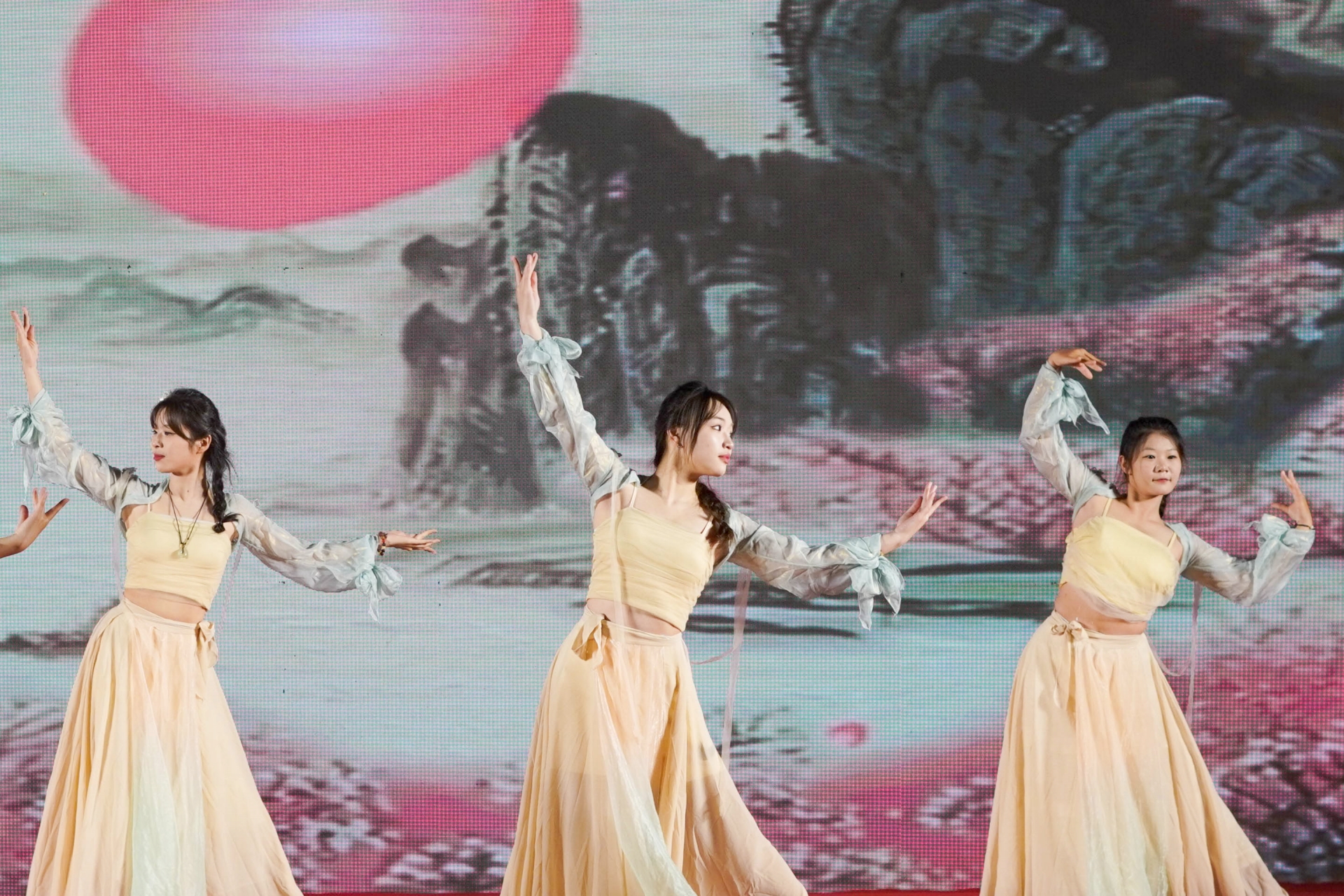 晚会第二篇章充满了青春梦想的活力和逐梦奋进的斗志。戏曲表演《牡丹亭》百转千回,声声天籁,展示了中华优秀传统文化,让观众们感受到昆曲艺术的魅力;歌曲《快乐女孩》,引领大家跟随音乐的律动,忘却忧愁,活力四射跳出属于自己的快乐旋律;吉他弹唱《晴天》,向大家诠释了什么是一样的青春,不一样的精彩,鼓励大家保持最好的状态,在青春的赛道上奋力奔跑;情景剧《逃出大英博物馆》,用浪漫的幕后故事 ,独特的立意、精细的设计,一句“请带我回家”的承诺让“文物奔赴”,提醒广大青年勿忘国耻,吾辈当自强;汉服社带来的舞蹈《花月宴》,让大家体验到身临其境般的穿梭时空,绽放华美之姿,热情似火的拉丁《恰恰》,让欢快地气息弥漫全场。