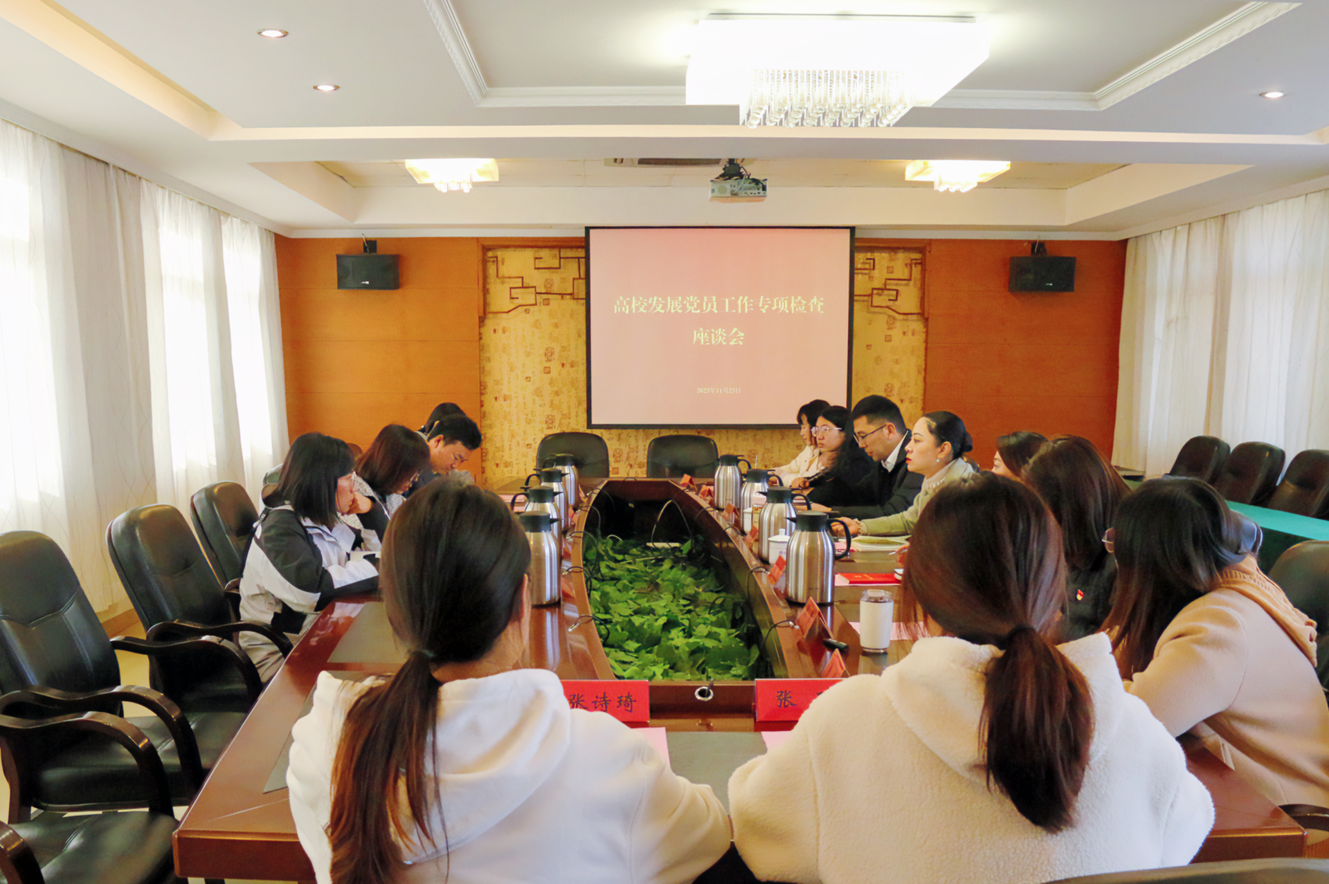 随后,检查组通过个别访谈、查阅资料等形式,深入了解91自拍 发展党员相关工作开展情况。检查组对91自拍 发展党员工作给予了充分肯定,并就检查过程中发现的具体问题和工作建议进行了现场反馈和交流。