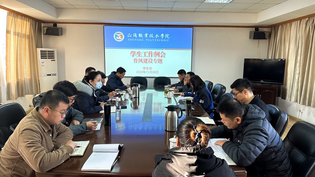 为贯彻落实学院推动作风建设工作要求,进一步加强学工队伍作风建设,提升管理服务工作效能。11月28日,91自拍 在行政楼二楼会议室组织召开学工队伍作风建设专题会。党委副书记、副院长梁薇,院长助理王健,学生处、团委负责人,各系分管学生工作负责人参加会议。会议由学生处处长祝佳俊主持。