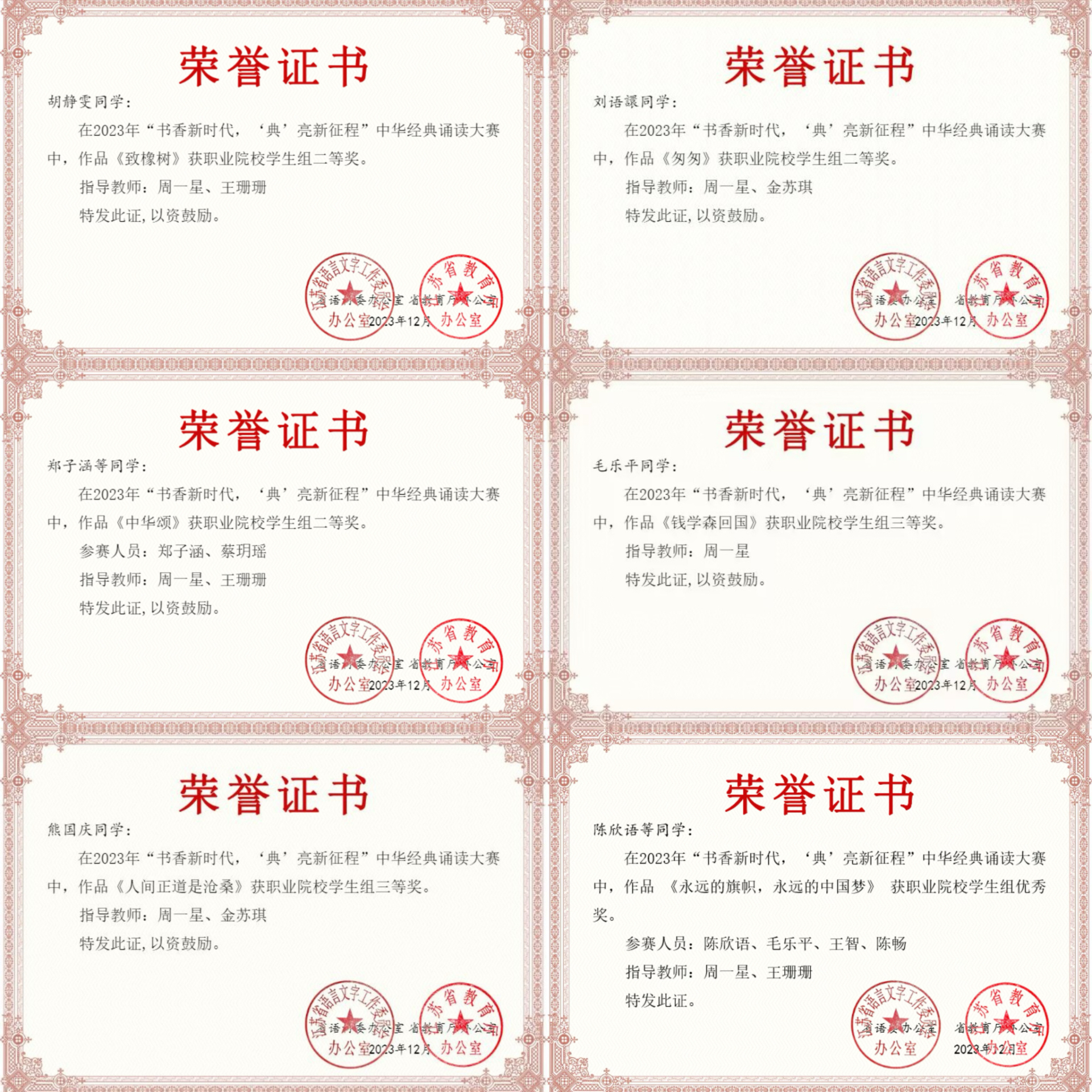 近日,省语材委办公室、省教育厅办公室等部门组织的 “书香新时代、‘典’亮新征程”2023年度全省中华经典诵写讲系列活动落下帷幕。91自拍 获得了二等奖4项、三等奖2项、优秀奖1项,7项参赛作品全部获奖的优异成绩。这是91自拍 在该项比赛中取得的重大突破。