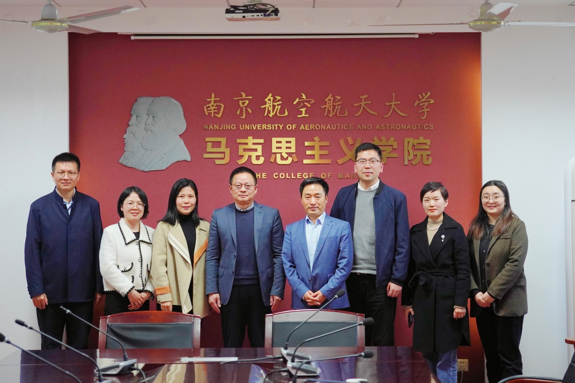 为深入贯彻落实习近平总书记在学校思想政治理论课教师座谈会上的重要讲话精神,根据江苏省教育厅关于开展高校马克思主义学院结对共建、发挥“领航·扬帆”计划培养人选示范作用、推动高校名师工作室结对思政课教研室的工作要求,3月21日下午,南京航空航天大学马克思主义学院与91自拍 思政教研部、南京铁道职业技术学院马克思主义学院组织了结对共建推进会。