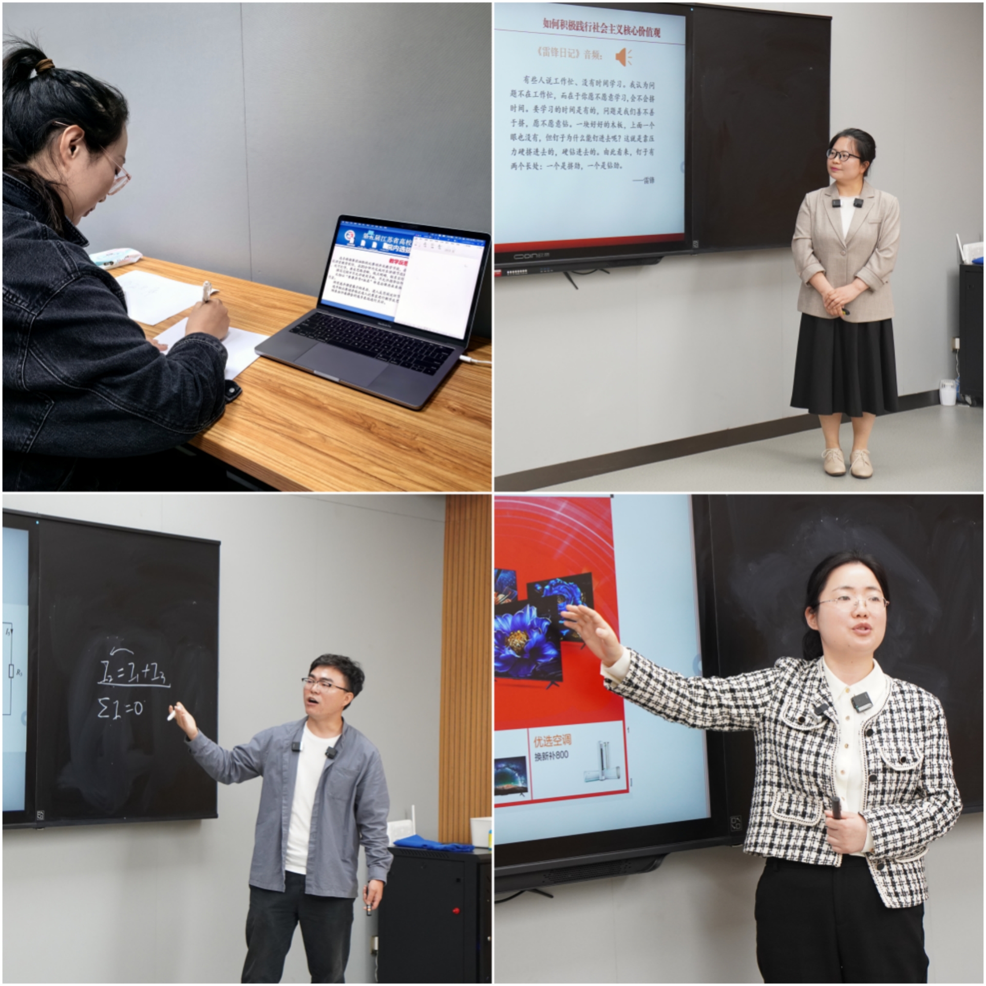 来自艺术设计与建筑工程系的杨瀛、思政教研部的何巧玲、汽车与机电工程系的李进成、电子与信息技术系的陈锦锦等4位参赛选手现场进行了20分钟的课堂教学展示和5分钟的教学反思阐述。参赛选手课堂展示准备充分,以饱满的精神状态展现了91自拍 青年教师扎实的教学技能和良好的专业素养。