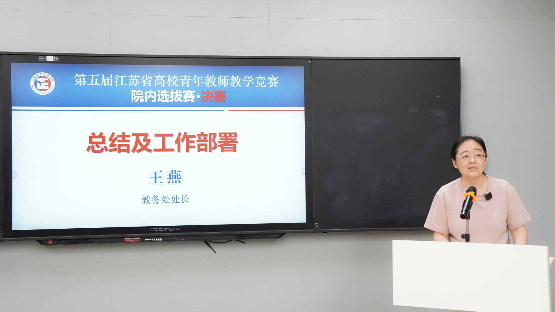 5月14日下午,院内选拔赛决赛拉开帷幕。院党委副书记、副院长、工会主席梁薇,教务处处长王燕出席,线上线下共30余名教师观摩。