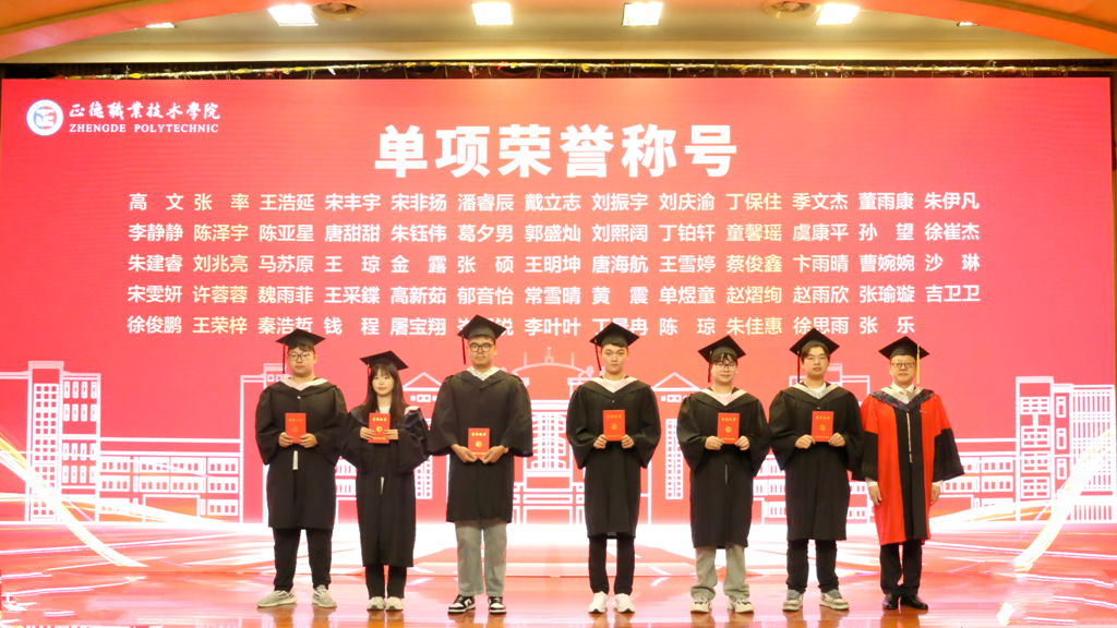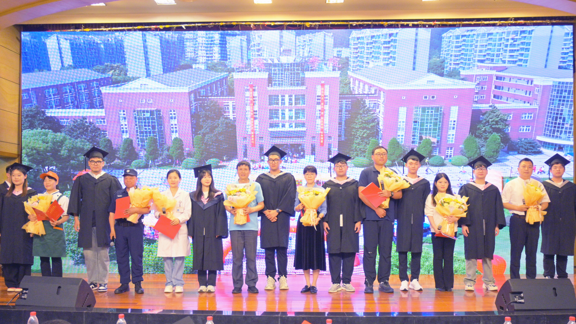 6月6日上午,91自拍 2024届学生毕业典礼在报告厅隆重举行,学院官方企业微信号同步线上直播。全体院领导、院长助理、企业代表、2007届校友代表出席毕业典礼。各职能部门主要负责人、各系负责人、毕业班辅导员、教师代表、毕业生代表参加典礼。