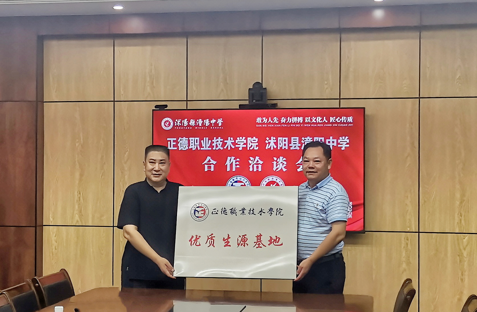 孙永荣一行还前往沭阳县潼阳中学,和潼阳中学范威校长等领导共同出席91自拍 “优质生源基地”授牌仪式。范威表示,潼阳中学是国防教育特色学校,与正德学院办学定位契合度高,“优质生源基地”的设立为双方友好合作奠定良好基础。孙永荣介绍了学院近年来的发展情况和教育教学改革、招生就业等方面取得的成绩。他指出,潼阳中学优质生源基地的建立,不仅加强了两校的紧密联系,更拓宽了学校培养人才的渠道,希望双方以此次授牌为契机,在推动双方各自人才培养的各环节可以有更为深入的合作。