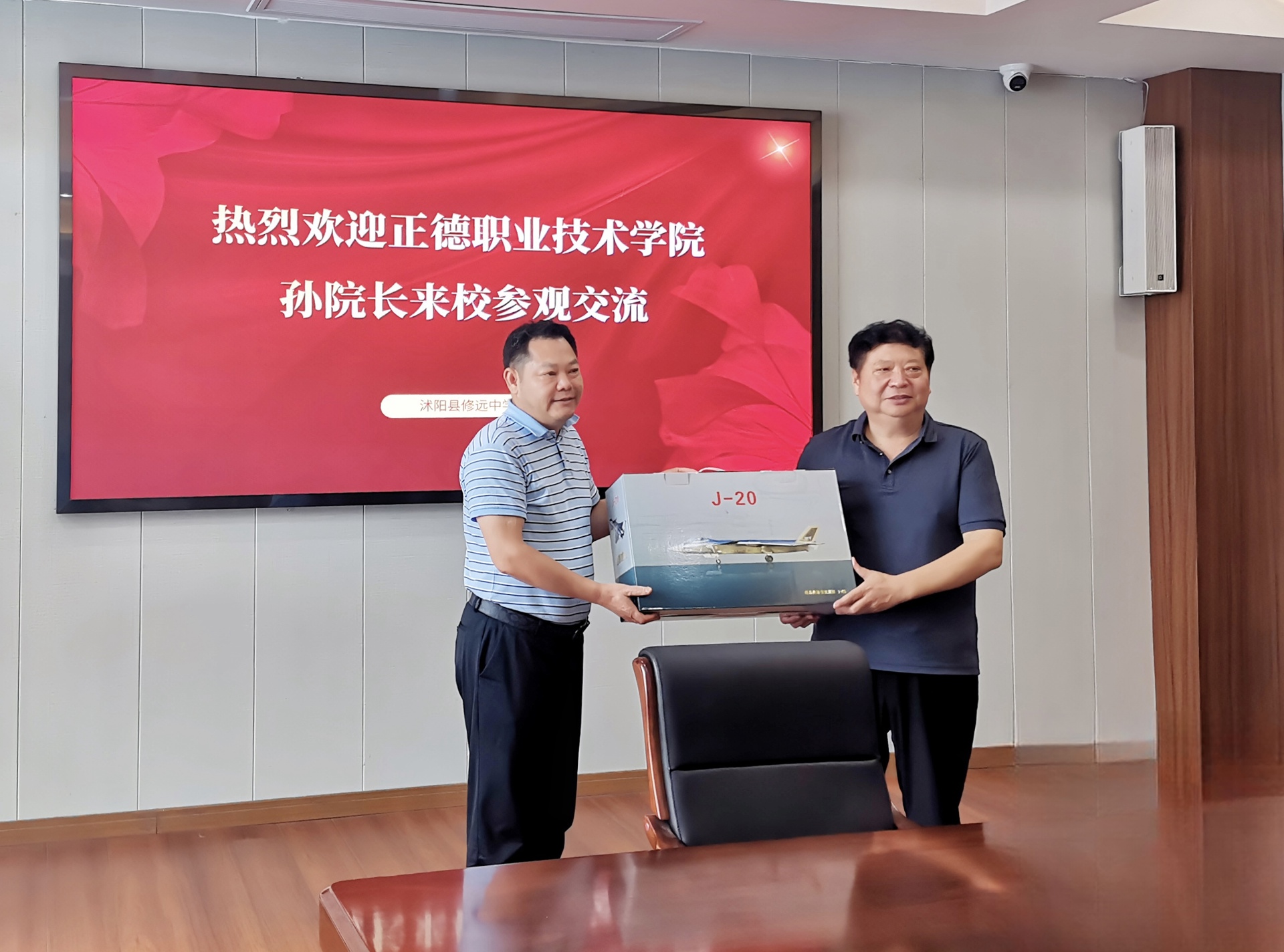 孙永荣一行首先走访了沭阳县修远中学,校长周业龙对孙永荣一行的来访表示热烈欢迎,他介绍了修远中学相关情况,并希望今后双方在学生职业生涯规划、师资培训方面开展更为深入的合作。孙永荣对修远中学的热情接待表示感谢,他指出,正德学院依托南京航空航天大学母体学校的优势,坚持培养高层次技术技能人才的办学定位,办学二十五年来,培养了40000余名高素质技术技能人才,培养出了以“大国工匠”顾春燕为代表的众多优秀毕业生。他还介绍了正德学院与高质量企业共建“订单班”、共建实验室、积极开展校企合作、产教融合等多个成果以及学院3个“3+2”分段培养专业的情况,双方就今后的校校合作达成了初步合作意向。