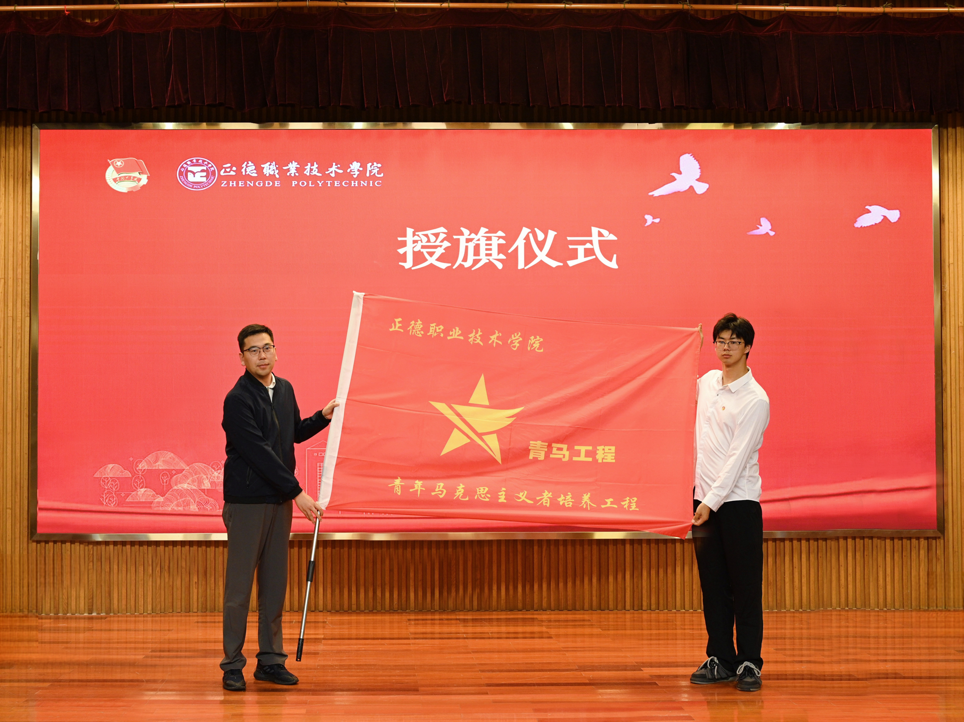 团委副书记魏兴彪介绍了第十四期培训班培养方案及考核办法,思政教研部副主任(主持工作)李颖为第十三期青马优秀学员代表颁发荣誉证书,汽车与机电工程系李雨欣同学代表第十四期青马学员表态发言,党群工作部部长祖国为第十四期培训班授旗。