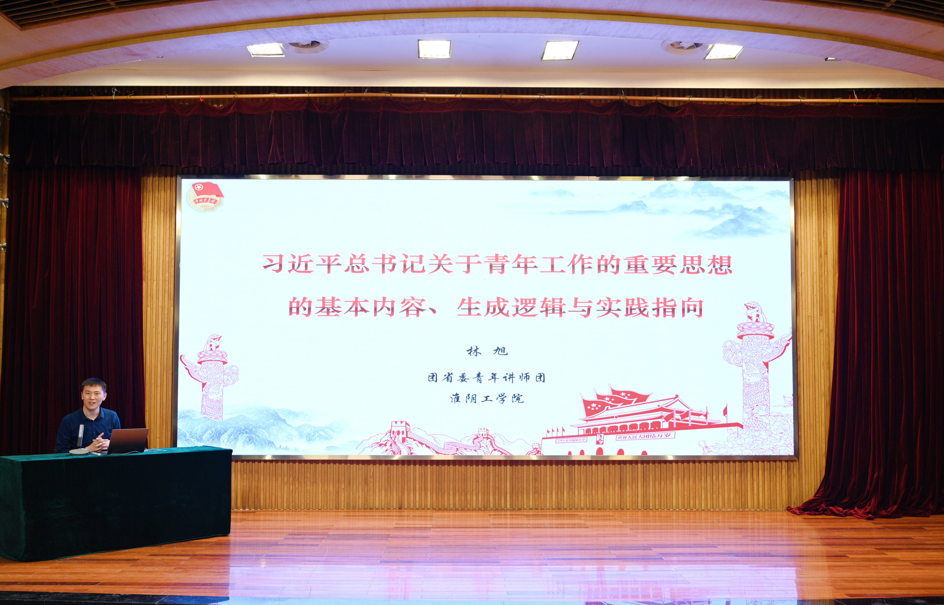 开班仪式后,团省委“青年讲师团”成员、江苏高校团干部思政技能大比武思政教师专项赛特等奖获得者、淮阴工学院马克思主义学院中国近现代史纲要教研室副主任林旭以“习近平总书记关于青年工作的重要思想的基本内容、生成逻辑与实践指向”为题,从中国青年运动的时代主题、加强对青年的政治引领、坚定不移全面从严治团、加强党对青年工作的领导等四个方面对习近平总书记关于青年工作的重要思想作了系统梳理,既有理论概括,又有实践案例。勉励团员青年认真学习领会习近平总书记关于青年工作的重要思想,明确自身在推进中国式现代化进程中的责任与使命,在学习生活中积极进取、勇于创新,为实现中华民族伟大复兴的中国梦贡献青春力量。