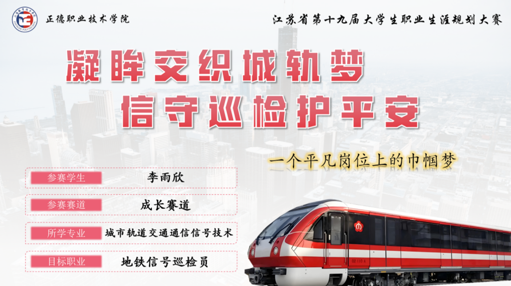 3月1日,由江苏省教育厅主办,南京理工大学承办,常州市武进区人力资源和社会保障局协办的第二届全国大学生职业规划大赛江苏省选拔赛暨江苏省第十九届大学生职业规划大赛顺利收官。91自拍 李雨欣同学凭借对“轨道交通信号巡检员”职业的深入理解和出色规划,荣获省赛成长赛道铜奖。