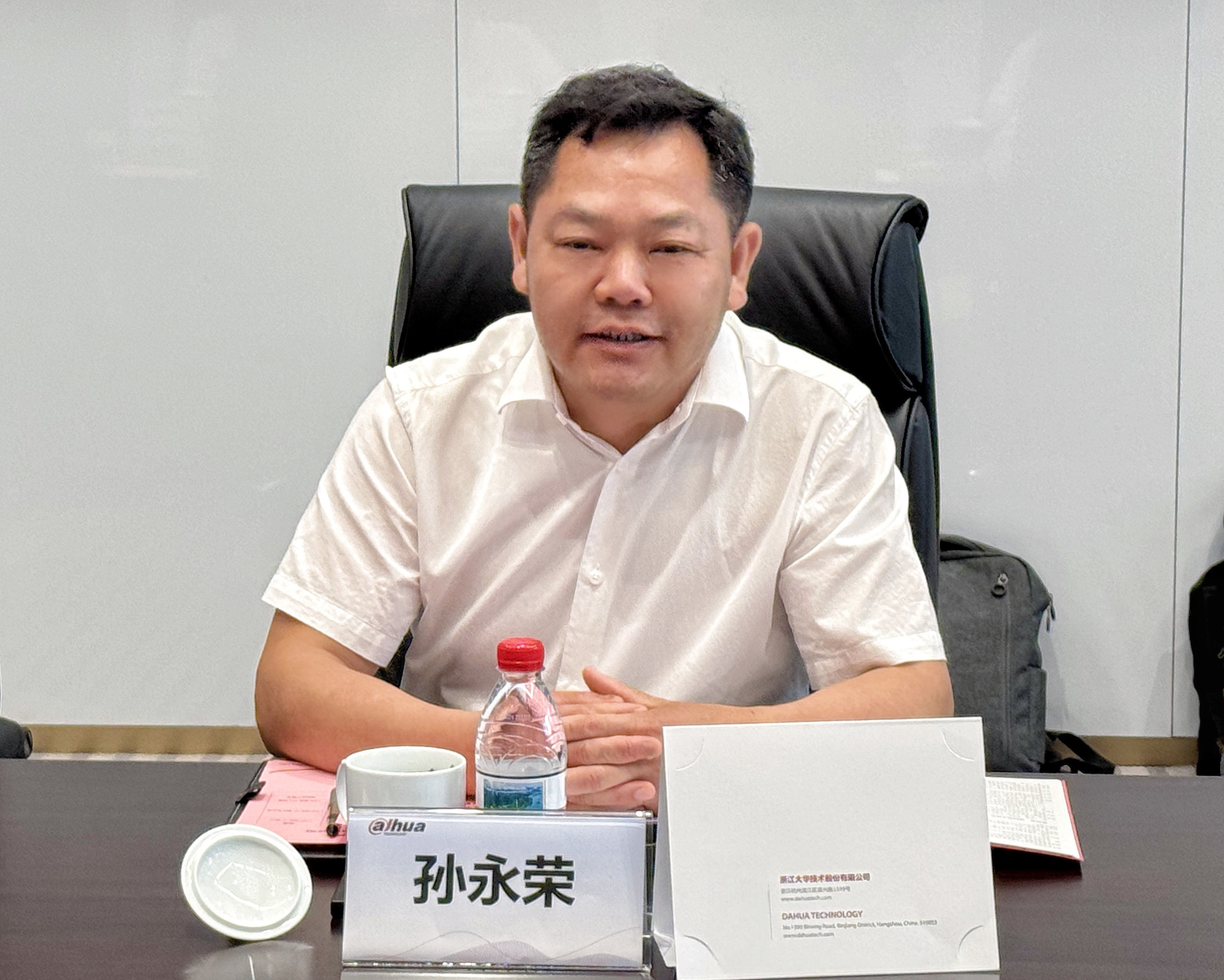 王益铭代表浙江大华向孙永荣一行表示欢迎,并介绍了公司基本情况。他表示,公司始终以“技术+产业”双轮驱动,深度对接国家产教融合政策体系,围绕“四链”融合与“五金”建设,统筹布局企业教育服务规划与校企合作项目实施路径。他希望,以本次签约仪式为契机,进一步深化与学院的合作,构建更加紧密型的校企合作模式,在专业共建、实训平台共搭、师资队伍共育、产学研用共促等领域开展多维协同,深化务实合作。
