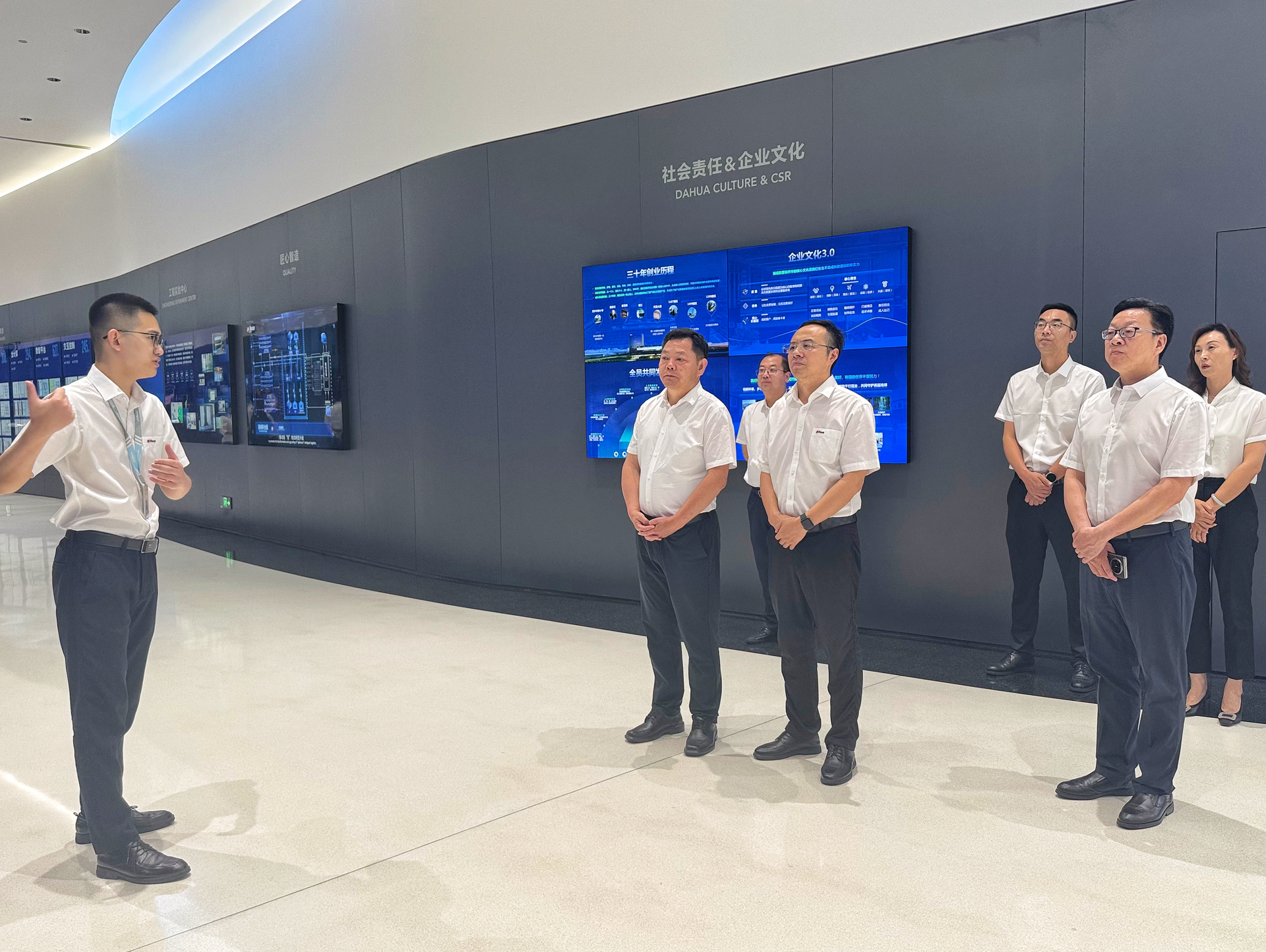 在浙江大华领导全程陪同下,孙永荣一行参观了公司总部的数智展厅和位于杭州富阳的大华智慧物联网产业园,直观感受了浙江大华在视频监控、人工智能等领域的领先技术实力,以及在低空经济、智慧城市、智慧制造、新能源汽车、智慧医疗、智慧教育等领域的创新成果。