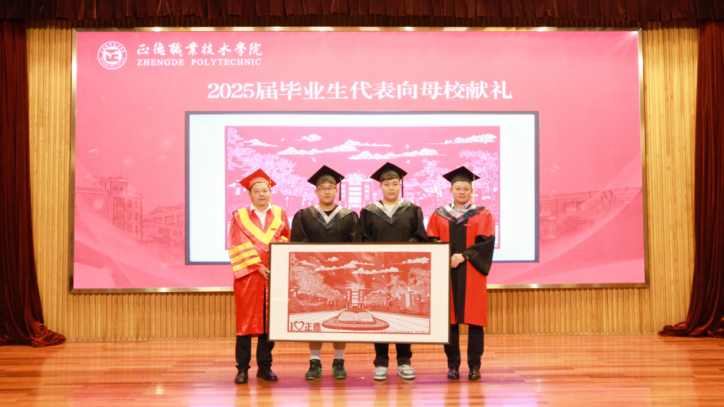 艺术设计与建筑工程系毕业生朱成淼、宗涛涛代表2025届全体毕业生向母校献礼,一幅刻画学院的精致剪纸,不仅蕴含着毕业生对母校的深情与敬意,更是对母校培养出更多大国工匠、能工巧匠的良好祝愿。