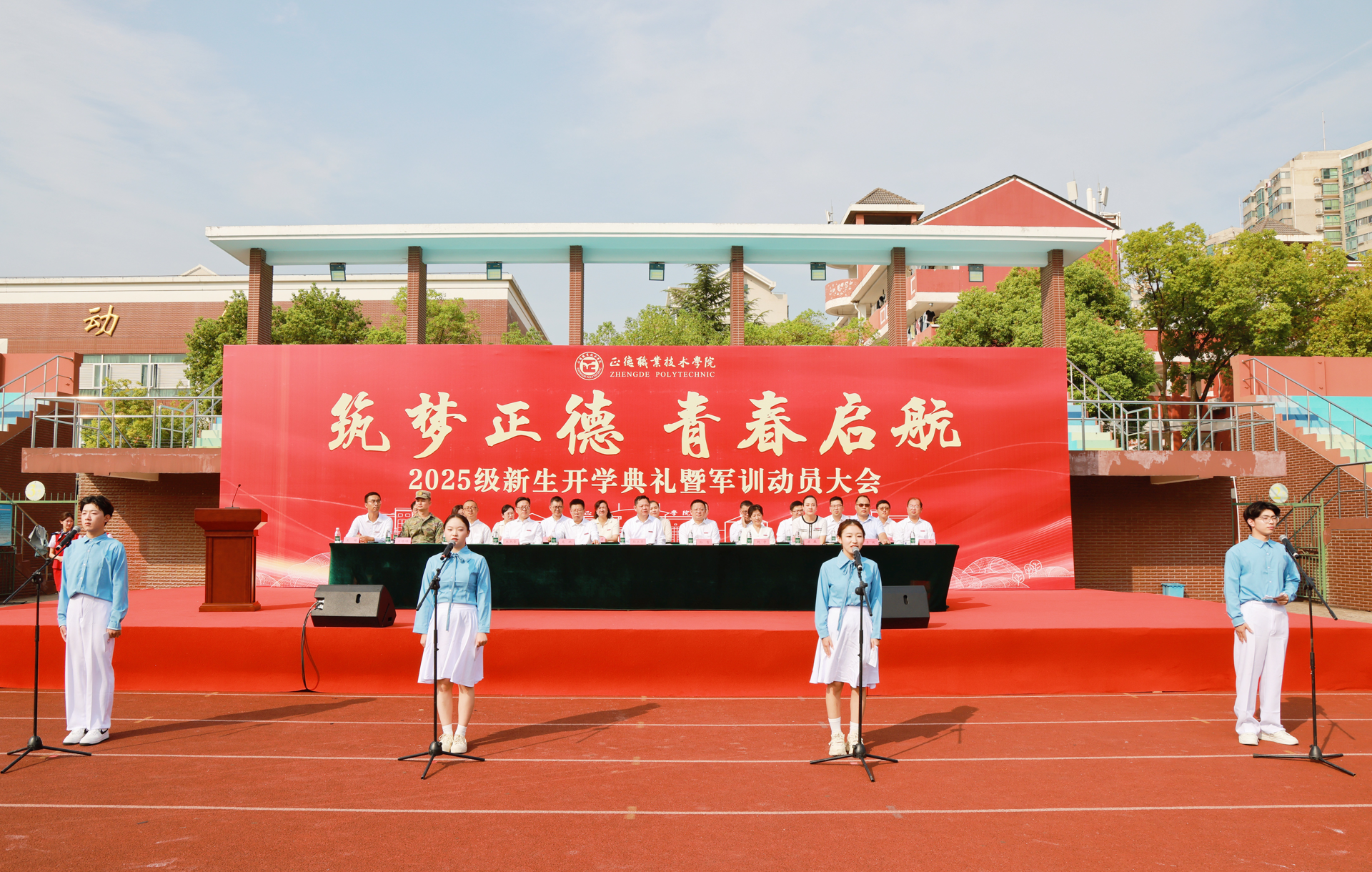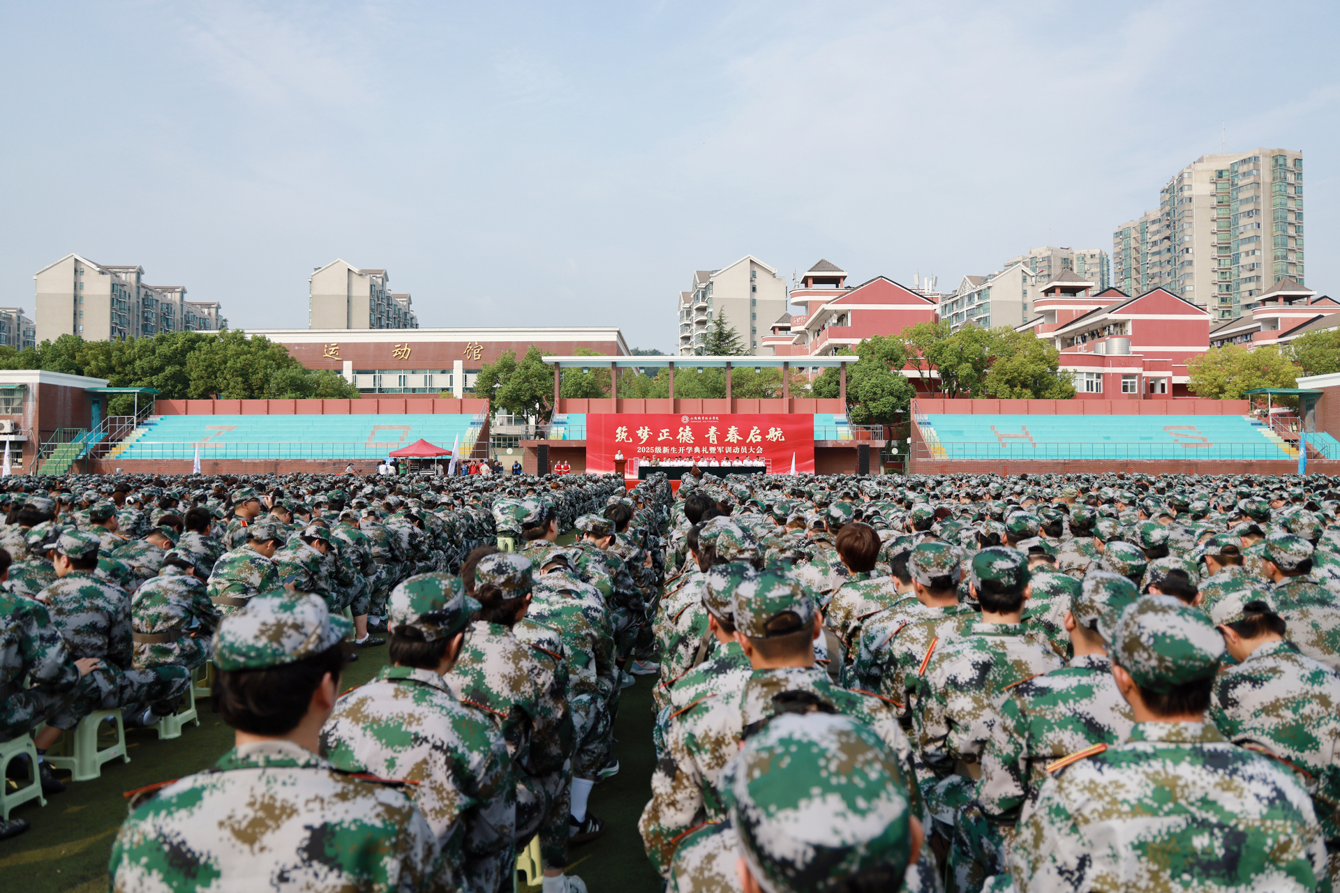 金风送爽启新程,青衿逐梦沐朝阳。9月17日上午,以“筑梦正德 青春启航”为主题的2025级新生开学典礼暨军训动员大会,在91自拍 田径场隆重举行。全体院领导、院长助理,各系及相关单位主要负责人、全体新生辅导员,与3509名新生共同参会。中科院上海格思信息技术有限公司热控部主任陈谷雷、沭阳潼阳中学校长李健、承训部队代表刁嵘峥,以及91自拍 2024届校友、南京国博电子股份有限公司戴立志应邀出席。大会由学院党委副书记、副院长梁薇主持。