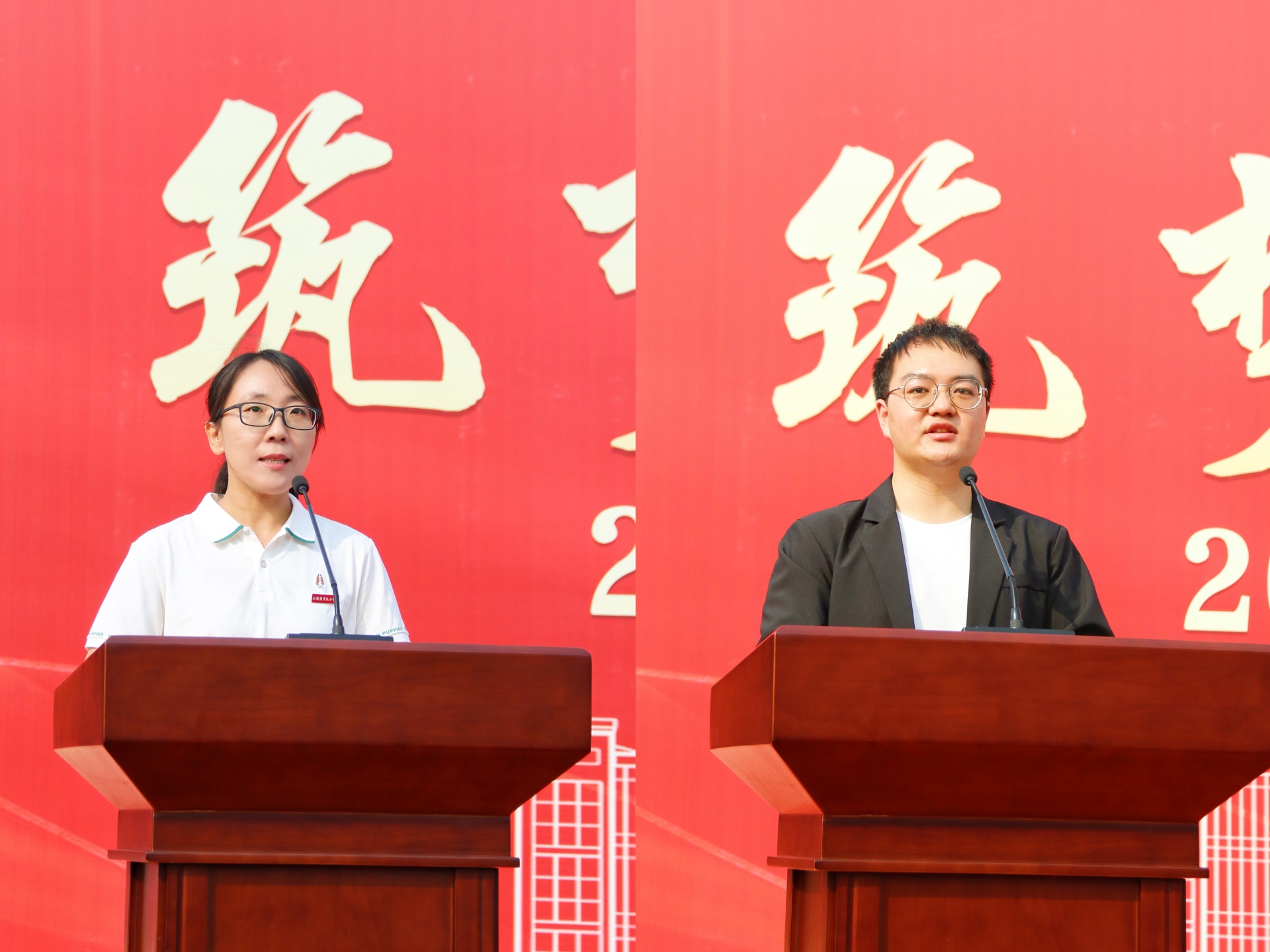 随后,院领导为新生代表佩戴校徽。全体新生整齐佩戴校徽,庄严宣誓:“做一名勤于学习、善于创造、甘于奉献、勇于担当、怀揣梦想的正德人”,誓言铿锵有力,彰显新生风貌。
