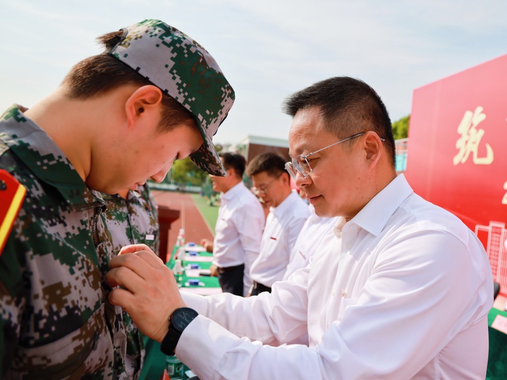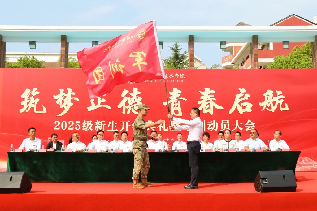 大会现场,院党委书记、政府督导专员孙雷为军训团授旗,标志着2025级新生军训正式启动。承训部队代表刁嵘峥随即对参训新生提出纪律要求与训练期望,鼓励新生以昂扬姿态投入军训。