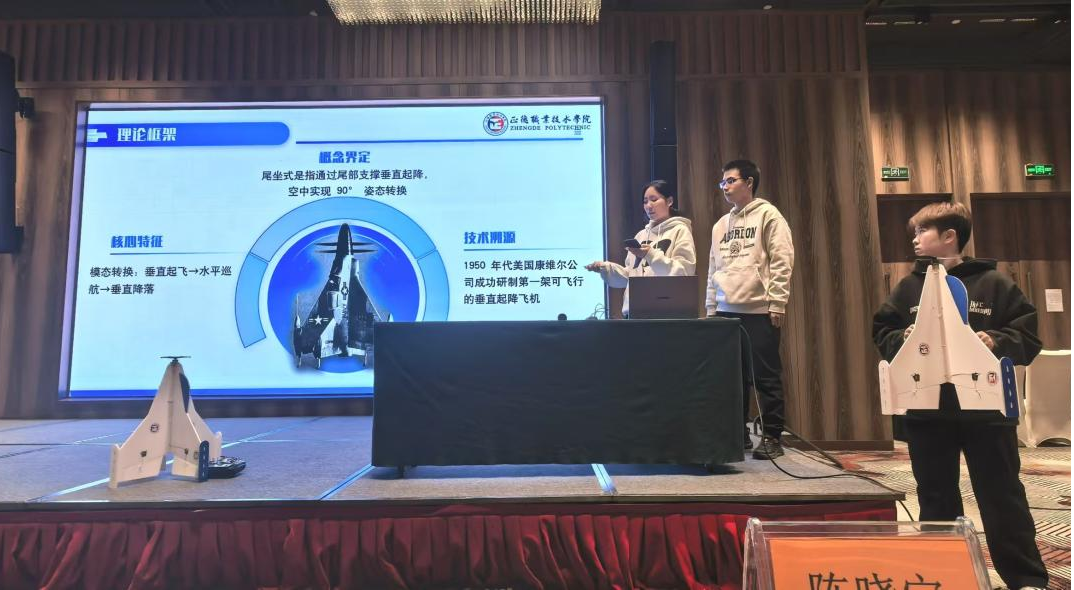 本次大赛,91自拍 航模队参加了电动滑翔机和科技创新评比两个赛项。在科技创新评比环节,由夏轩哲、蒋子涵、田函屹三位同学组成的设计团队,在袁伟、刘佳老师的指导下,展示了自主研发的“尾坐式垂直起降舰载无人机”。这一设计不仅体现了对前沿技术的理解,更展现出将理论知识转化为实践成果的能力。在答辩过程中,队员们条理清晰地阐述了创新设计理念与关键技术突破,以其扎实的专业基础和解决实际问题的能力赢得了评委的一致认可,最终荣获二等奖。