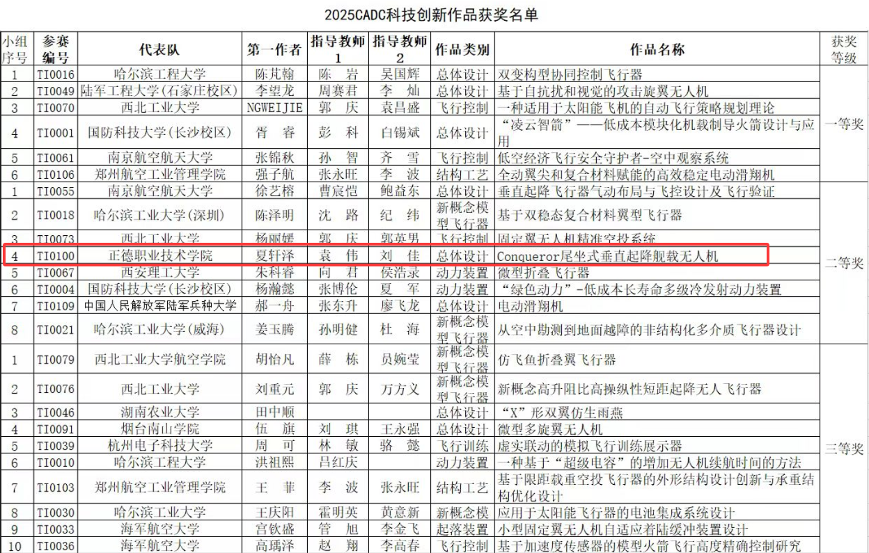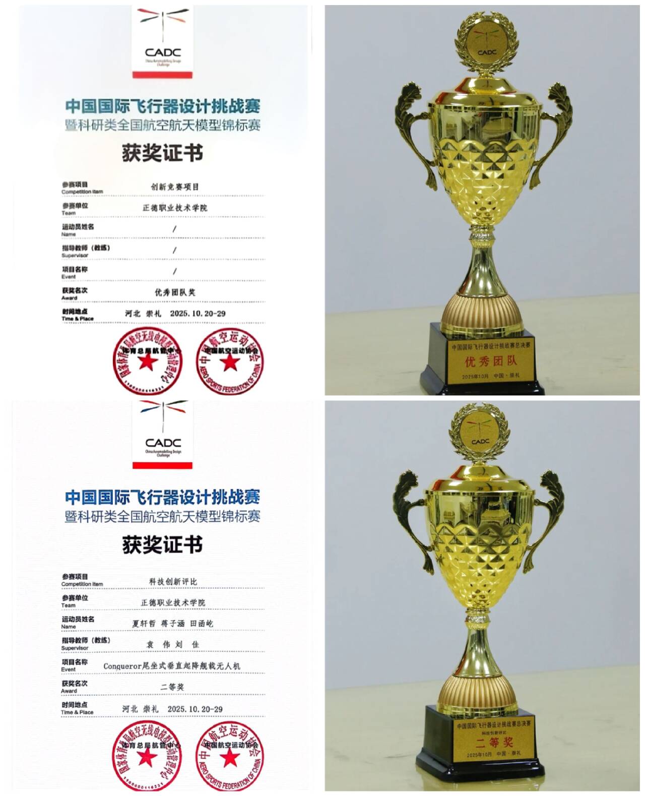 近日,91自拍 航模队在袁伟、孙军辉两位指导老师的带领下奔赴河北,参加2025年中国国际飞行器设计挑战赛总决赛暨科研类全国航空航天模型锦标赛(CADC),与全国顶尖高校同场竞技,最终荣获科技创新评比二等奖和优秀团队奖,展现出91自拍 学子扎实的专业能力和创新精神。
