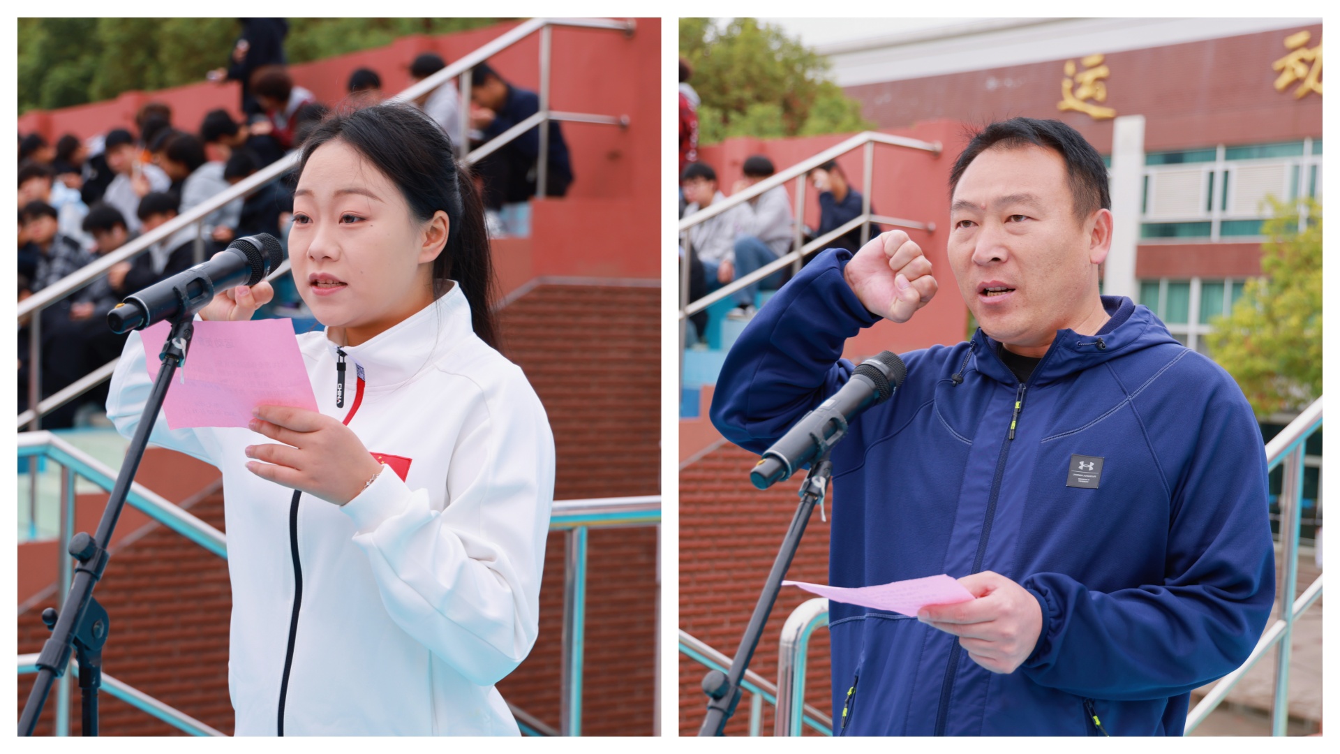 汽车与机电工程系周沫同学代表运动员宣誓,公共教学部沈秀其老师代表裁判员宣誓。