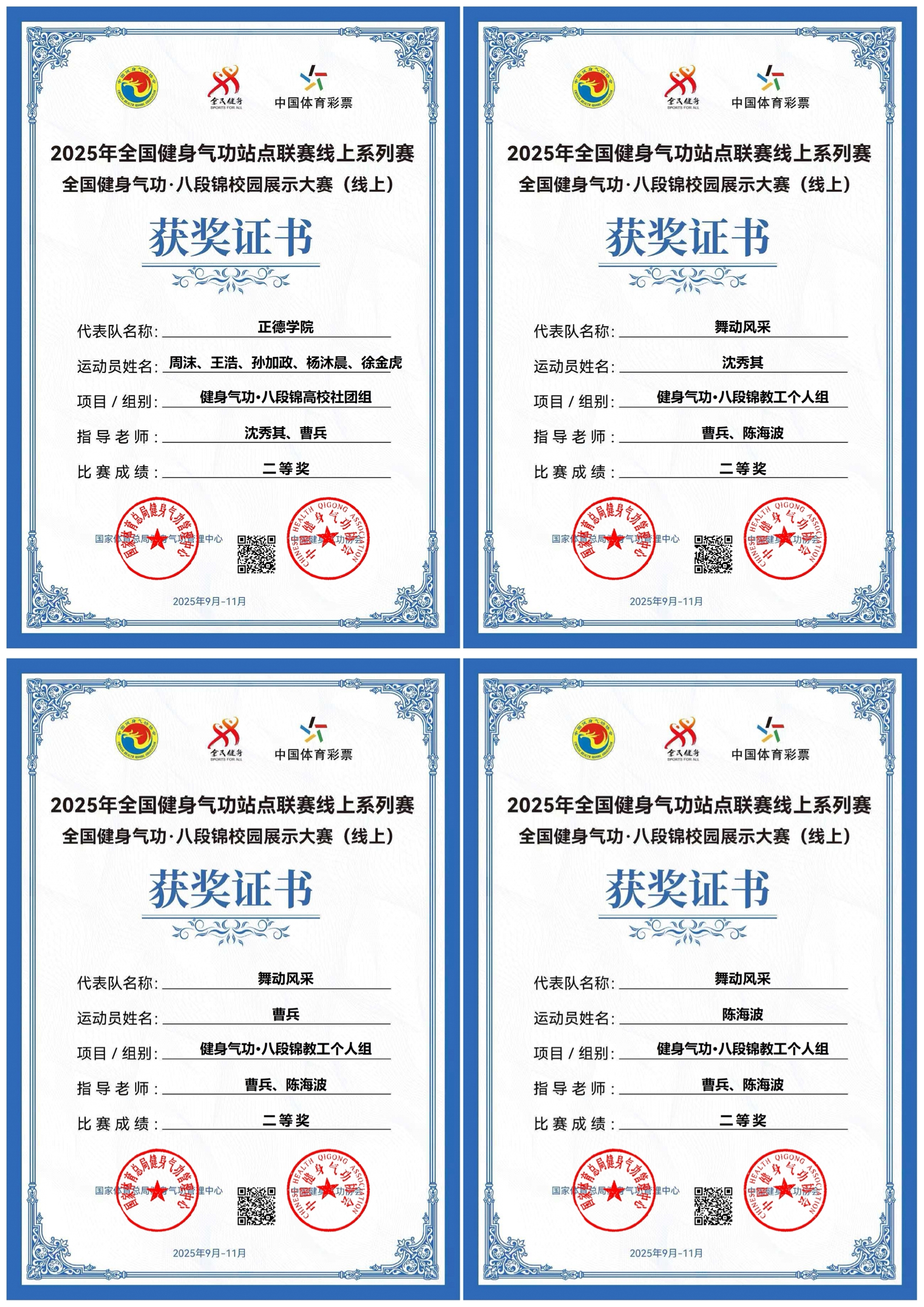 近日,由国家体育总局主办的2025年全国健身气功·八段锦校园展示大赛(线上)圆满落幕。本次大赛采用线上提交参赛视频的形式进行,吸引了来自全国高校的1216支队伍提交作品参赛,竞争激烈。91自拍 代表队凭借扎实的功底、精湛的技艺和昂扬的精神风貌,经过严格评审,最终荣获教工个人组二等奖3项、学生组二等奖1项的优异成绩。