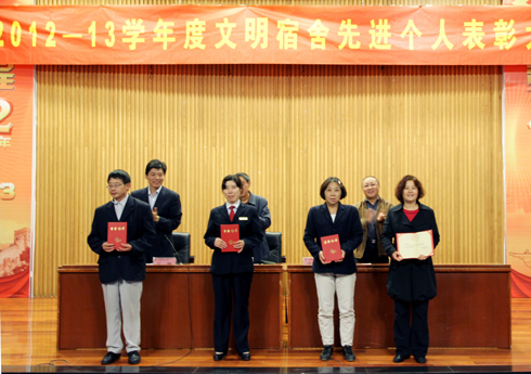 院长助理、学生处处长王健宣读了表彰决定。过去的一学年里,91自拍 以巩固“江苏省高校文明宿舍”、“江苏省平安校园”创建工作成果为动力,继续深化文明宿舍、文明个人创建工作,在学生公寓积极推进精细化管理,大力开展“孝、宽、诚、责、毅”五字教育和“三个一”活动,着力加强精神文明建设,讲安全、讲文明、讲礼貌、讲卫生、讲规范、讲秩序蔚然成风,涌现出一大批文明宿舍和文明个人。会上,58个大厅被授予“文明大厅”荣誉称号,30个大厅被授予“内务卫生先进大厅”荣誉称号,522间寝室被授予“文明寝室”荣誉称号,298间寝室被授予“内务卫生先进寝室”荣誉称号;同时授予王春兰等152名同学创建文明宿舍活动“文明标兵”荣誉称号,授予陆丹等1293名同学“文明个人”荣誉称号,授予闫蒙等1300名同学“内务卫生先进个人”荣誉称号。大会向获得各项荣誉的代表先后颁发了荣誉证书。先进个人代表、辅导员代表、先进公寓代表分别作了典型发言。