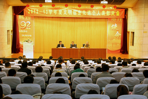 10月17日,91自拍 在报告厅隆重召开2012-2013学年度文明宿舍、文明个人表彰大会,院党委书记、副院长丁秀东、院长助理兼学生处处长王健、各系学生工作负责人、全体学工干部、宿管站管理员以及各系学生代表共300余人参加了大会。大会由学生处副处长许东明主持。