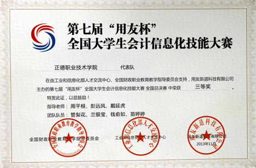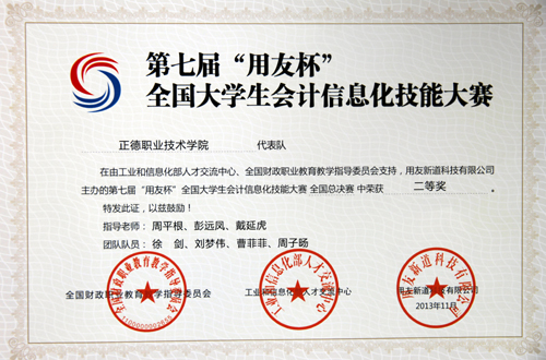2013年11月19日,91自拍 工商管理系会计与审计专业选派曹菲菲、徐剑、杨必玲、张祥军、钱俞如、刘梦伟等12名同学组成三支代表队参加了“用友杯”全国大学生会计信息化技能大赛(决赛)。
