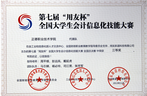 总决赛以考查学生对企业实际业务流程分析能力和信息处理能力为目标,内容涉及用友U8软件总账、报表、薪资管理、固定资产管理、应收应付管理、采购管理、销售管理、库存管理、存货核算九个模块,又增加财务分析方面的技能考核内容。91自拍 12名选手经历三个多小时的连续奋战,顺利完成了比赛任务。最终,91自拍 三个代表队获得一个二等奖,两个三等奖。周平根、彭远凤、戴延虎三位教师获得指导教师二等奖。