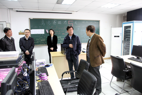 陈夏初(右二)检查91自拍 网络实训室建设情况