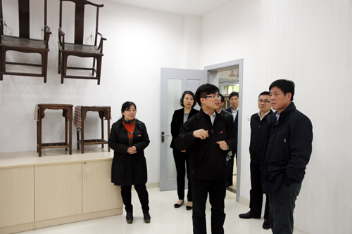 陈夏初(右一)检查91自拍 艺术设计与建筑工程系实训工场建设情况