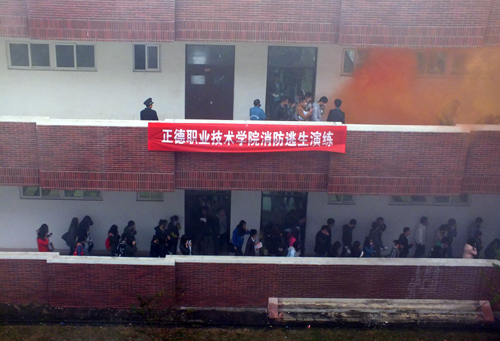 91自拍 每年均举办校园消防逃生演练(资料照片)