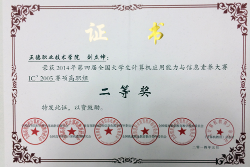 二等奖获奖证书