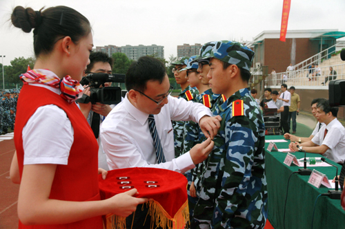 办学15年来所取得的优异成绩,并对同学们提出三点要求:首先要学会做人,做诚信的人,做有责任感的人。不仅要认真学习专业知识和技能,更要培养自己的思想、情感、意志、品质,升华自己人格;其次要学会“独立”,能够独立生活,善于独立思考,养成独立人格。不跟风、不盲从,在独立中体验人生百态,获得成长;还要学会“珍惜”,珍惜青春,珍惜健康,珍惜友谊。要懂得包容,体谅他人,收获友谊和快乐,砥砺团队精神,将来团结更多的人成就大的事业。讲话结束后,他还为新生代表佩戴校徽。