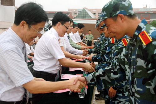 院领导检阅新生军训成果