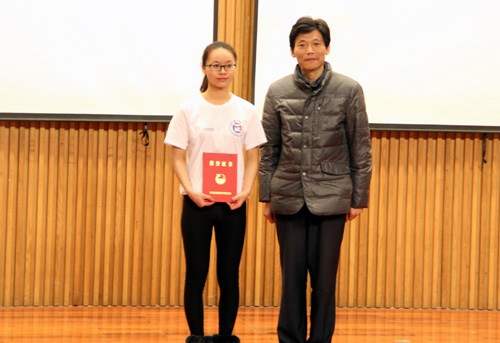 院长助理 学生处处长王健为获奖代表颁奖