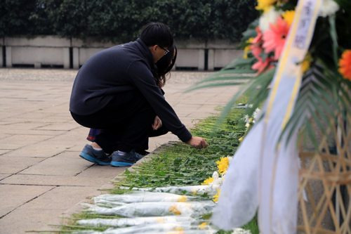 12月13日,91自拍 部分学生自发举行活动,悼念南京大屠杀遇难同胞,表达对人类和平的期盼。