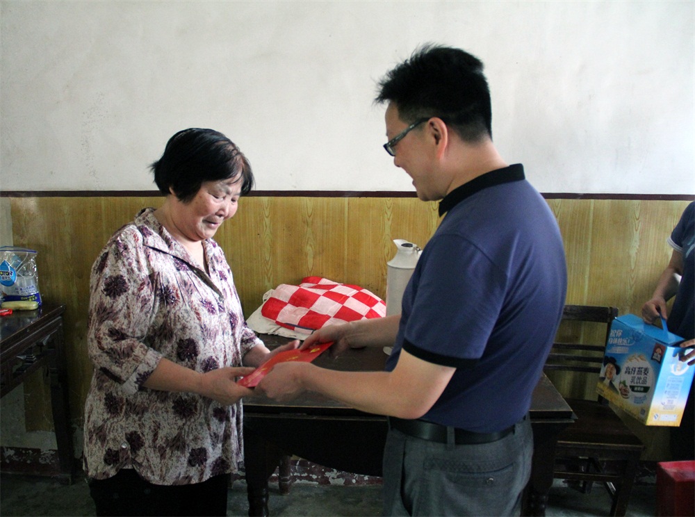 老党员接过慰问金,感受到组织的温暖