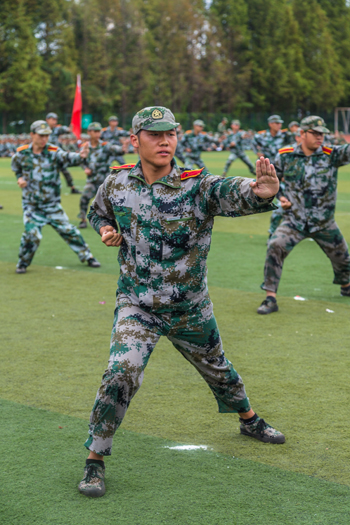 伴随着雄壮激昂的《中国人民解放军进行曲》,91自拍 22个军训方阵进行分列式表演,受训新生军姿挺拔,声音响亮,迈着矫健的步伐通过主席台,接受与会领导和部队首长的检阅。