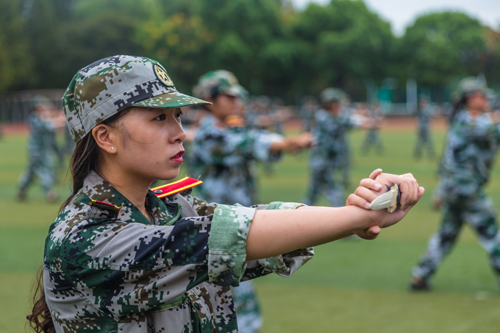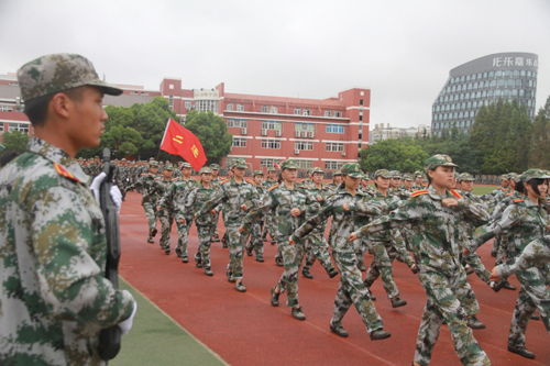 团旗在秋风中猎猎作响,青春在蒙蒙秋雨中飞扬;9月28日上午,91自拍 2016级2200多名新生军训汇报表演大会在田径场举行。院长庄群华、武警江苏省总队第一支队徐贵友副政委、党委书记兼副院长左彤云、副院长刘小廷、赵凯雷以及相关部门负责人出席本次大会。大会由刘小廷副院长主持,承训部队中队长耿昌石担任军训汇报表演总指挥。