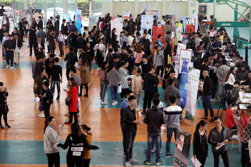 10月20日上午,院经济与管理系和艺术设计与建筑工程系在院运动馆举行2017届毕业生专场招聘会,1300余名学生携带简历积极参与应聘和面试,场面火爆。