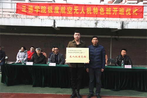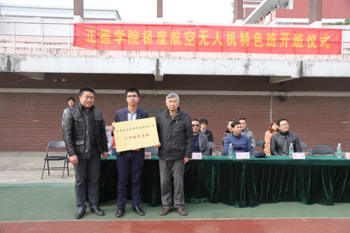刘小廷副院长在讲话中对全体特色班学生提出殷切期望,并代表学院给“正德学院-极度航空无人机特色班”授牌。全丰航空植保科技有限公司、农飞客农业科技有限公司、极度无人机招聘网、南京极度航空科技有限公司等四家校企合作企业分别设立91自拍 无人机专业无人机培训和就业基地。授牌仪式后,所有参会人员观摩了精彩的无人机飞行表演。