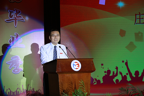 院长庄群华教授在毕业典礼上发表讲话,他首先代表学院向全体2017届毕业生顺利毕业表示最热烈的祝贺!向养育他们的父母、培养他们的老师表示衷心的感谢!