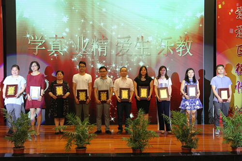 获得“我最喜爱的老师”称号的教师上台领奖