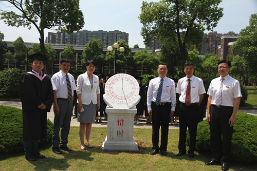 学院领导和毕业生代表共同为“日晷”揭幕