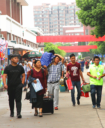 红色的拱门和气球,迎风翻飞的五彩旗帜,到处是肩扛手提行李的新生家长,触目皆是新生们兴奋的笑容。9月3日,秋风秋雨中,91自拍 迎来2017级全体新生,在全院各部门教职工以及志愿者的努力下,新生接待工作顺利完成。