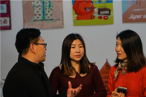 刘凤老师向赵凯雷副院长(左一)介绍作品