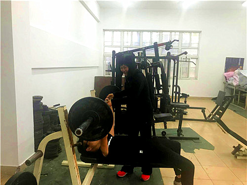 杨俊娃老师指导学生在做力量性训练