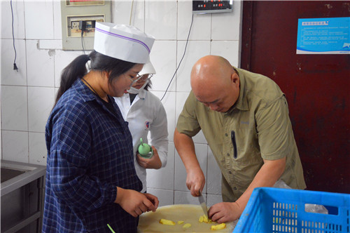 5月24日中午,91自拍 一食堂人声鼎沸,香气弥漫,热闹非凡,第十八届“琴湖涌春”校园文化艺术节——校园厨艺大赛在此举行,来自全院的“正德厨神”们在这里进行厨艺终极对决!院团委书记学生处副处长祖国、后勤处副处长查理、食堂厨师长宗洪安,学生代表鲁宥源担任此次大赛的评委。